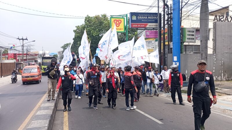 Pantauan pewarta dilokasi, peserta aksi melakukan long march dari kawasan industri Batujajar menuju kantor DPRD dan dilanjutkan ke kantor Pemkab Bandung Barat pada Selasa (15/10/2024).