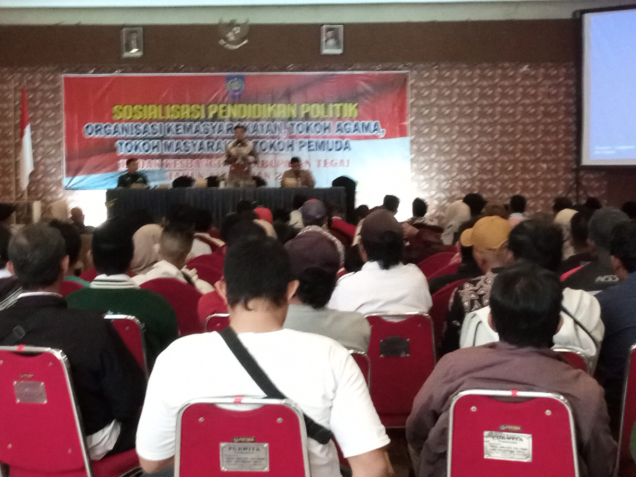 Kabupaten Tegal | SekitarKita.id,- Sosialisasi Pendidikan Politik digelar oleh Kantor Kesatuan Bangsa dan Politik (Kesbangpol) Kabupaten Tegal di Hotel Grand Dian Slawi, Tembok Luwung, Kecamatan Adiwerna, Kabupaten Tegal, Kamis (06/06/2024).